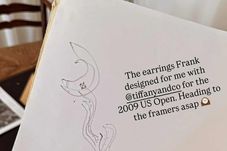 „Cerceii pe care Frank i-a creat pentru mine împreună cu Tiffany pentru US Open 2009”, este descrierea făcută de Sharapova la imaginea cu schița acelor cercei, la care a adăugat că aceasta trebuie dusă la înrămat „cât mai curând posibil”.