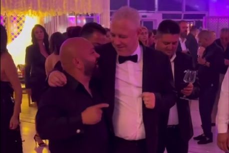 Aflat în mijlocul ringului de dans, Marius Șumudică a ascultat cu zâmbetul pe buze cum i-a dedicat Adrian Minune câteva melodii, iar una chiar era destinată dușmanilor antrenorului refuzat de Rapid.