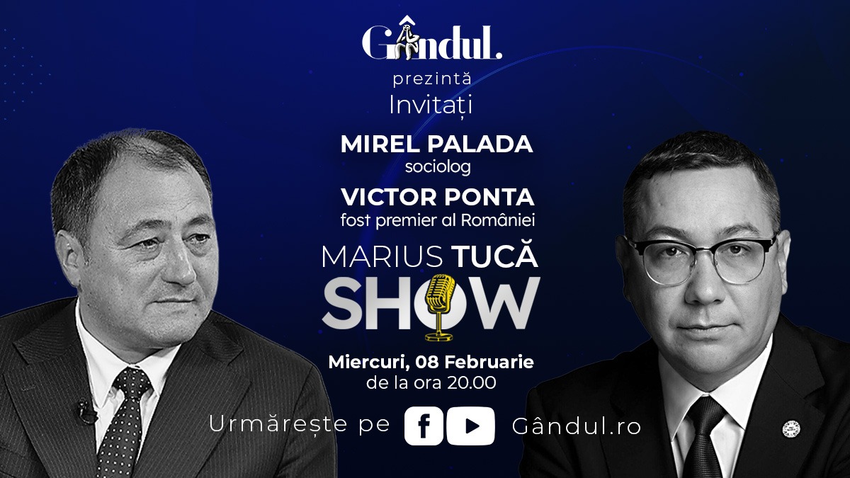 Invitații zilei sunt Stelian Bujduveanu, viceprimar al Capitalei, Victor Ponta, fost premier al României și Mirel Palada, sociolog. Emisiunea o puteți urmări pe gandul.ro, canalul de YouTube Gandul, pe paginile de Facebook Gandul și Marius Tucă și pe mariustuca.ro. ”Tineți aproape!”