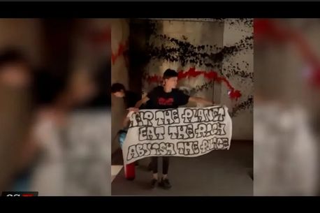 În videoclip, mai multe persoane erau văzute ținând un banner pe care stătea scris mesajul „Ajutați planeta, mâncați-i pe bogați și desființați poliția”.