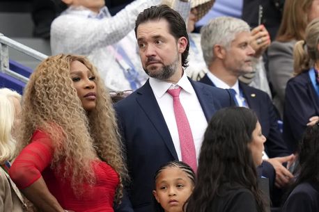 Serena Williams et son mari Alexis Ohanian - Célébrités assistent à la victoire de Léon Marchand qui devient champion Olympique sur 400 m 4 nages lors des Jeux Olympiques de Paris 2024 (JO) à Paris La Defense Arena à Nanterre le 28 juillet 2024. © Dominique Jacovides-Pierre Perusseau/Bestimage Celebrities attend the victory of Léon Marchand who becomes Olympic champion in the 400m medley during the Paris 2024 Olympic Games (Olympics) at Paris La Defense Arena in Nanterre on July 28, 2024,Image: 893606106, License: Rights-managed, Restrictions: , Model Release: no