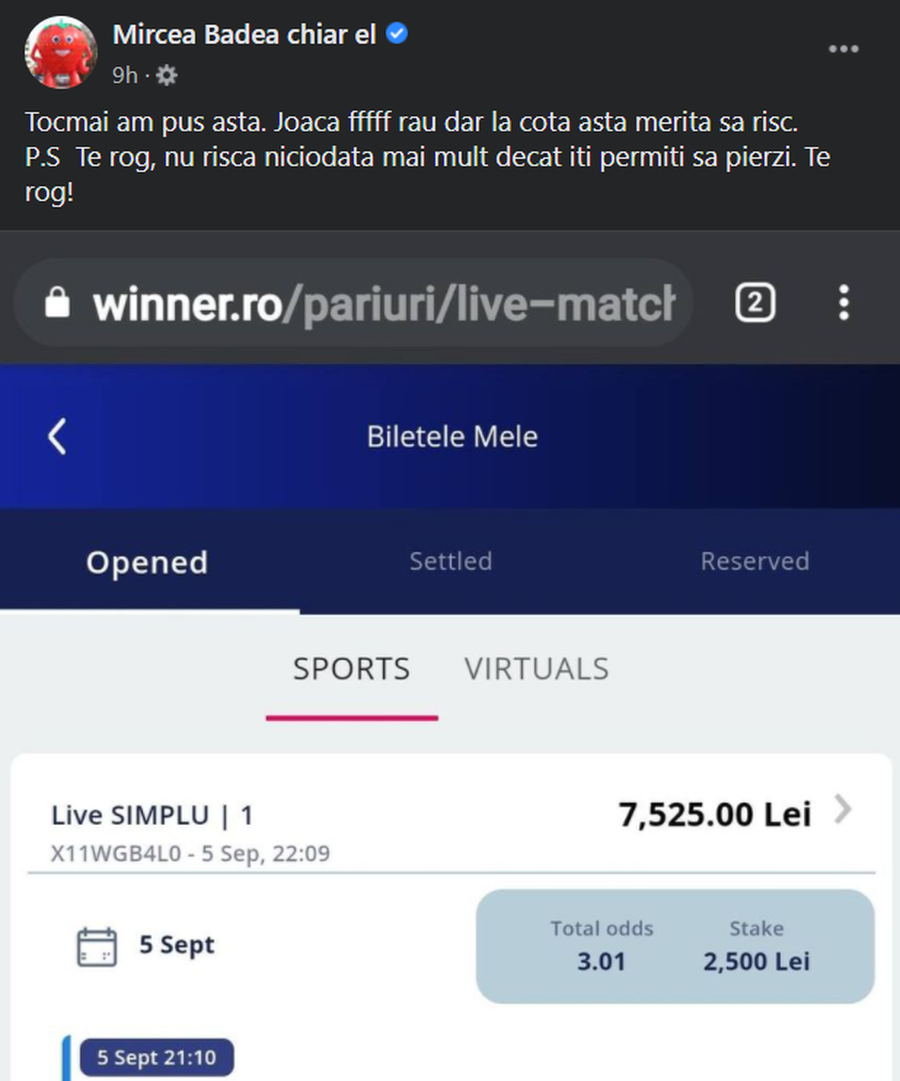 Mircea Badea nu e prima dată când câștigă la pariuri. De-a lungul timpului a publicat zeci de bilete câștigătoare.