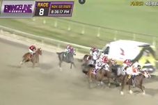 Opt jochei au scăpat ca prin minune de un accident teribil în timpul unei curse de cai care a avut loc sâmbătă seara, la Evangeline Downs în Louisina. După prima curbă, cei opt concurenți s-au trezit în fața lor cu o ambulanța, care circula pe pistă, asta deși în mod normal trebuie să fie în afara zonei de concurs.