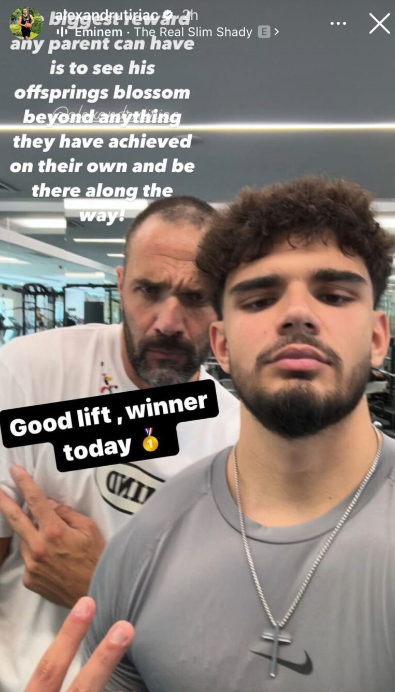 Ion Alexandru Țiriac a publicat, pe Insta Story, o fotografie alături de fiul său, imortalizată într-o sală de fitness. Tânărul de 16 ani a subliniat că este mulțumit de realizările sale și consideră că își face părinții mândri cu acestea.
