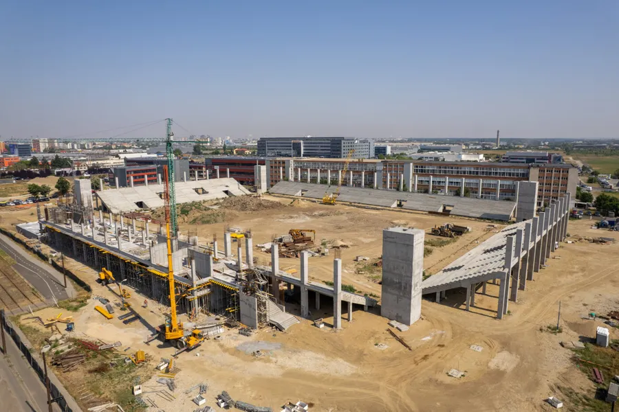 Stadiul lucrarilor la noul stadion „Eroii Timisoarei”, cu capacitatea de 10.101 scaune si 450 locuri de parcare, din Timisoara, joi 26 iunie 2025. Foto: Sebastian Tătaru / Mediafax Foto