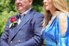 Gică și Marilena au ales ținute asemănătoare cromatic. „Regele” a purtat un sacou la două rânduri, cu nasturi auriți, și a asortat o floare la piept, un trandafir de culoare roșie, ce simbolizează iubirea. Marilena, la brațul lui Gică, a completat tabloul, având o rochie în nuanțe de bleu cu alb.