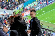 Imaginile i-au surprins pe amândoi extrem de emoționați, iar după ce bărbatul s-a așezat în genunchi și a întrebat-o pe partenera sa dacă vrea să fie soția lui, aceasta a răspuns categoric „DA” și s-au sărutat pasional. Toată lumea din tribune a asistat la acest moment romantic i-a aplaudat pe cei doi îndrăgostiți, care au atras atenția de la meci pentru câteva minute.
