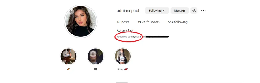 Pe lângă Neymar, Adriana Paul mai este urmărită pe rețelele de socializare și de alte persoane publice, iar pe listă se află Ovidiu Popescu (FCSB), Cristi Ganea (Panathinaikos Atena), Felipe Teixeira (ex – FCSB) și Adrian Mititelu Jr, patronul lui FC U Craiova.