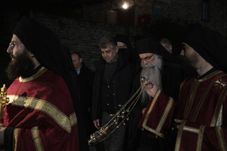 „În primul rând doresc să vă mulţumesc pentru primire şi îmi menţin părerea că niciun păcătos nu merită o asemenea primire. Cum spuneaţi, părinte stareţ, orice venire sau revenire e o binecuvântare şi o împlinire sufletească. Sunt într-o vizită neoficială, împreună cu cei mai apropiaţi prieteni ai mei, şi vreau să mulţumesc în mod deosebit familiei pe care o cârmuiţi, care ne-au permis aceste puţine zile de a face parte din familia lor şi le mulţumesc şi în numele meu şi al prietenilor mei sfinţilor părinţi că ne-au permis să fim parte a acestei vieţi duhovniceşti.