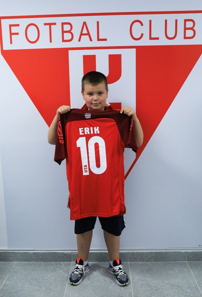 Dar, până la meciul cu CFR Cluj, Erik a fost la antrenament. Nu la grupa sa de vârstă, la Oradea, ci la antrenamentul de luni condus de Laszlo Balint. Cei de la clubul UTA au fost atât de impresionați de băiețelul de 8 ani, încât i-au oferit bucuria unei strângeri de mână, a unei îmbrățișări cu cei pentru care s-a bucurat până la lacrimi vineri seara. Erik a fost în vestiarul echipei, a primit o minge și un tricou (cu număru 10 și numele său pe el) și multe zâmbete de mulțumire din partea jucătorilor și antrenorilor utiști. A reconstituit și faza penalty-ului lui Hora la poarta din fața peluzei, acolo unde a început totul pentru el. O poveste despre o iubire „roș-albă”.