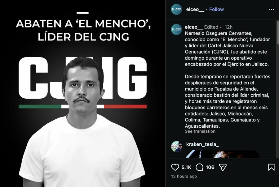 Anumite publicații din Mexic au sugerat că uciderea baronului din Jalisco a stârnit acte de violență în mai multe state, ajungându-se inclusiv la „blocaje rutiere, vehicule incendiate și ciocniri armate”.