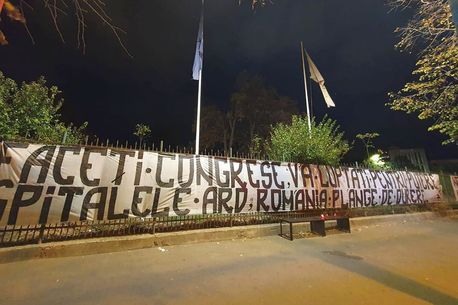 „Faceți congrese, vă luptați pentru putere / Spitalele ard, România plânge de durere”, este mesajul de pe banner-ul afișat de către suporterii Farului.