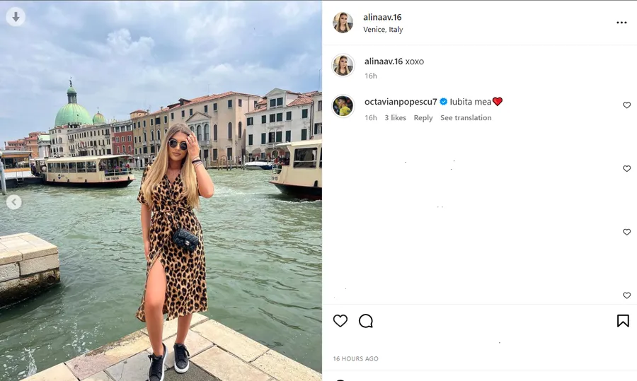 La o fotografie postată de Alina de la Veneția, Tavi Popescu a reacționat cu un mesaj simplu, dar direct. „Iubita mea”.