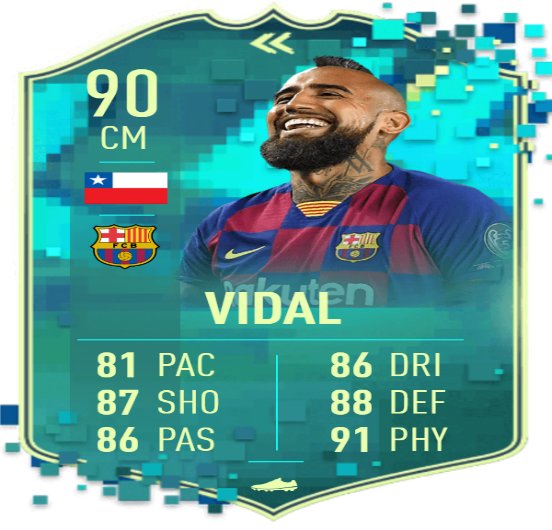 Mijlocașul central de la Barcelona, Arturo Vidal, a primit din partea EA Sports un card impresionant, cu niște statistici echilibrate, singurele abilități sub 80 de procente fiind agilitatea și executarea loviturilor libere.