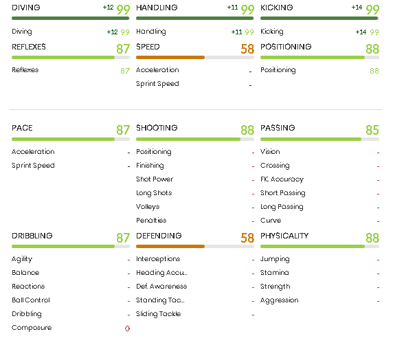 De la rating-ul său de 79, Pope a ajuns la 87 și este cot la cot cu portari ca De Gea, Alisson sau Lloris. Folosit într-o chimie de wall, jucătorul lui Burnley ajunge la atribuții de 99.