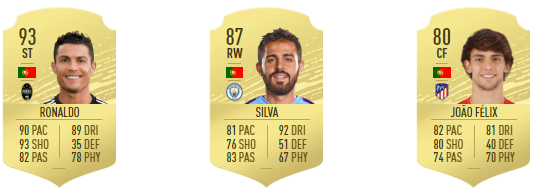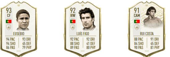 Un duo de neoprit poate fi format prin formația 4-3-3 cu Ronaldo pe poziția Striker iar Eusebio Central Forward. ProSport a realizat un Top 3 jucători gold și jucători legende, cu un review pentru fiecare card in parte.