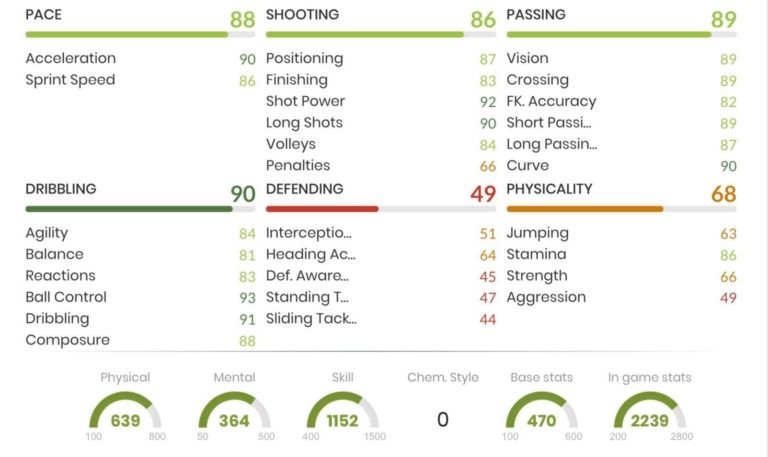 Mijlocașul central de la Barcelona, Arturo Vidal, a primit din partea EA Sports un card impresionant cu niște statistici echilibrate, singurele abilități sub 80 de procente fiind agilitatea și executarea loviturilor libere.