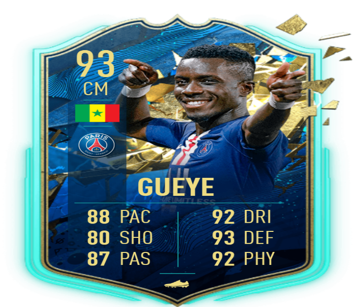 Cu acest card, jucătorul celor de la PSG a devenit unul dintre cei mai buni mijlocași defensivi din Ligue 1. Viteza de 88 și puterea defensivă de 93 îl ajută pe Gueye să devină un jucător puternic la mijlocul terenului.