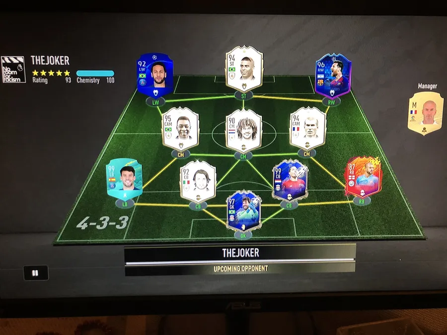 Echipa fundașului stânga de la PSG, Juan Bernat, a fost afișată de curând pe Twitter, printr-o fotografie postată de un advesar din campionatul de weekend. Jucătorul spaniol are o adevărată colecție de carduri, Ronaldo, Ruud Gullit și Pele fiind cei mai importanți jucători din componența echipei sale de Ultimate Team.