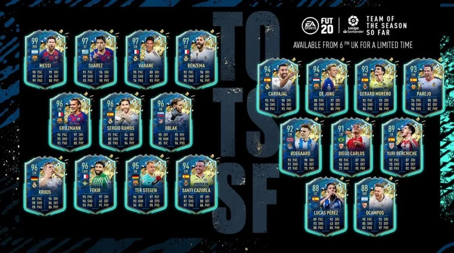 După ce săptămâna trecută a fost lansat TOTS ePremier League, acum a venit momentul campionatului din Spania. Vedetele din La Liga sunt Lionel Messi, Luis Suarez, Raphael Varane sau Sergio Ramos.