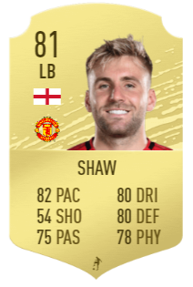 Luke Shaw valorează 12,2 milioane de lire pe piața de transfer și are un rating general de 81. Fundașul englez are o viteză de 82.
