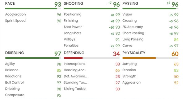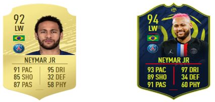 Cardul lui Neymar a primit upgrade pentru partea ofensivă, cât și pentru cea defensiva. Pe lângă asta, Electronic Arts s-a gândit să ii facă o surpriză jucătorului și l-a “vopsit” ca în realitate.