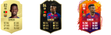 Primul upgrade pe care Nelson Semedo l-a primit din partea celor de la EA SPORTS a fost cardul de tipul INFORM pe poziția de LB. Cardul a primit un upgrade de 2+ overall și o viteză totală de 93. Cea mai bună variantă a fost însă venită odată cu începerea evenimentului HeadLiners. Event-ul HeadLiners a fost lansat în data de 17 ianuarie, iar cardurile jucătorilor prezenți au fost imbunătațite și au primit un alt design.