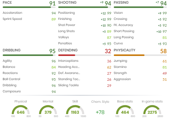 Mai jos sunt prezentate toate atributele jucătorului pentru acest stil de chimie.