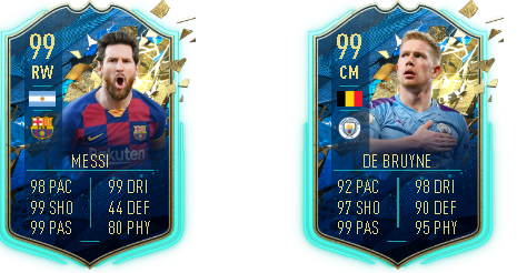 Premier League și La Liga sunt două dintre cele mai puternice campionate care participă la acest eveniment special. Cele mai bune carduri din campionatul Angliei sunt Kevin De Bruyne (99) și Virgil Van Dijk (99), în timp ce Spania are jucători precum Lionel Messi (99) sau Raphael Varane (97).