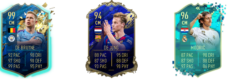 Cardul cu cel mai mare rating pe această poziție este cel al mijlocașului de la Manchester City, Kevin De Bruyne. Belgianul a primit din partea celor de la EA SPORTS un card de rating 99, devenind astfel cel mai bun mijlocaș din acest mod al jocului.