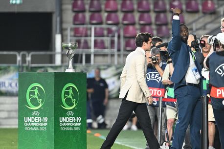 Înaintea confruntării, care a fost câștigată de Olanda, scor 1-0, Ianis Hagi a pășit pe gazonul arenei unde evoluează Rapid și nu a mers singur, ci alături de trofeul EURO.