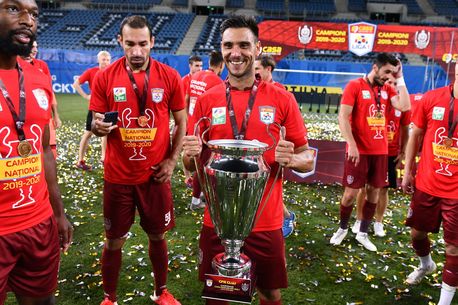 Mario Camora pozeaza alaturi de trofeu dupa castigarea titlului de campioana in urma meciului de fotbal dintre Universitatea Craiova si CFR Cluj, contand pentru play-off-ul Ligii 1 Casa Pariurilor, disputat fara spectatori pe Stadionul Ion Oblemenco din Craiova, luni 3 august 2020. © FOTO:Razvan Pasarica/SPORT PICTURES