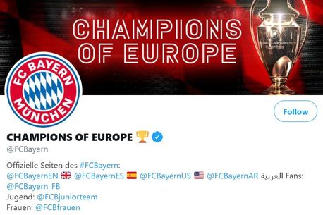 Reprezentanții lui Bayern Munchen au schimbat denumirea paginii de Twitter a clubului în „Champions of Europe” (Campionii Europei).