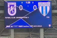 De asemenea, încă o mostră: pe tabela de marcaj electronică era scris corect numele primei formații – Fotbal Club Universitatea Craiova 1948. În schimb oaspeții erau trecuți simplu: CSU, cu logo vechi fără emblema cu leu.