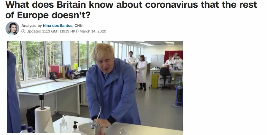 Agenția de presă Bloomberg susține că Boris Johnson și cabinetul său au o altă strategie, decât celelalte țări europene. Nu și-au propus stoparea pandemiei, ci încetinirea răspândirii virusului. „Strategia anti-virus a lui Boris Johnson prevede ca lumea să ia boala” este titlul articolului. „Cei mai mulţi oameni se vor îmbolnăvi, mulţi se vor simţi rău, dar aproape toţi îşi vor reveni”, este concluzia agenţiei Bloomberg.