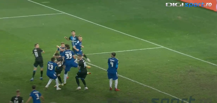 Compagno a încercat să lovească mingea cu capul, la fel și Găman, iar mingea l-a atins și pe Diallo.