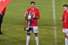 Fotbalistii stelisti Iulian Lucian Cristea, Ionut Daniel Vina, Andrei George Miron, Robert Andrei Ion si Andrei Daniel Vlad parasesc bucurosi terenul dupa meciul de fotbal dintre FCSB si FC Viitorul Constanta, contand pentru Liga 1 Casa Pariurilor, desfasurat fara spectatori pe Arena Nationala din Bucuresti, duminica 30 august 2020. © FOTO:Razvan Pasarica/SPORT PICTURES