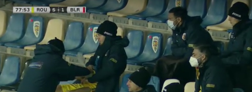 România a câștigat cu 5-3 amicalul cu Belarus. George Pușcaș a marcat un gol pe finalul primei reprize, dar putea să mai dea unul. În minutul 19 a obținut o lovitură de la 11 metri și a vrut să execute el. S-a consultat „din priviri” cu selecționerul, iar Mirel Rădoi i-a făcut semn să-i lase balonul lui Răzvan Marin. Căpitanul a reușit să marcheze și a dus tabela la 2-0.