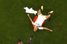 Acesta s-a așezat pe gazon și și-a apelat video familia, plângând în hohote. După ce a terminat de vorbit, acesta s-a întins pe spate, încercând să realizeze ceea ce trăiește în momentul respectiv. Unul dintre coechipieri și-a făcut apariția lângă el și l-a îmbrățișat pentru a-l îmbărbăta.