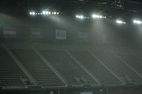 „Pe durata antrenamentului, o ploaie torențială s-a abătut asupra stadionului și sunt șanse ca vremea să fie la fel și mâine”, scrie site-ul FRF.