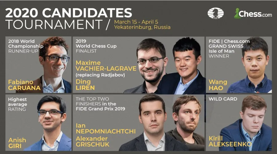 Turneul Candidaţilor la şah se va desfăşura în perioada 16 martie-3 aprilie, la Ekaterinburg (Rusia), cu premii totale de 500.000 de euro, iar câştigătorul îl va înfrunta pe norvegianul Magnus Carlsen pentru titlul mondial.