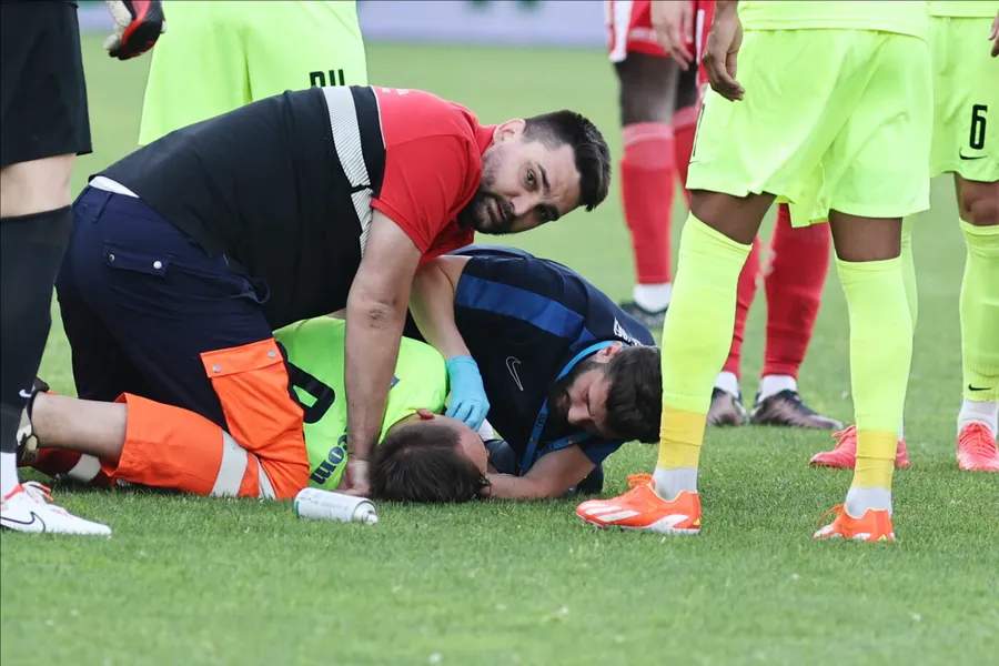 Jucătorul moldovenilor își revine într-un târziu și este transportat la Spitalul Elias aflat în apropierea stadionului. Știrile despre starea tânărului de 20 de ani încep să curgă cu tot felul de diagnostice care înfioară. „Poliția a fost sesizată de către cadrele medicale”. O procedură care trădează un aspect grav în legătură cu starea fotbalistului.