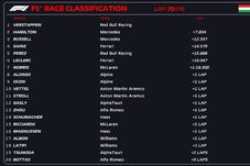 Max Verstappen a câștigat datorită strategiei pe care a aplicat-o. Plecat de pe locul 10, campionul mondial a intrat la boxe de nu mai puțin de 3 ori până în turul 39. Olandezul a terminat cursa cu un avantaj de aproape 8 secunde în fața septuplului campion mondial, Lewis Hamilton.