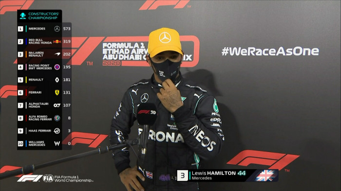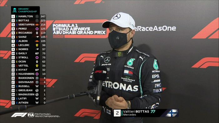 Lewis Hamilton, infectat cu noul coronavirus spre finalul sezonului, a încheiat 2020 cu 347 de puncte, fiind urmat pe podium de Bottas (223 p) şi de Verstappen (214 p)