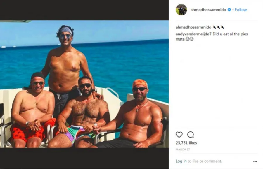 Tot pe atunci, Mido devenea vedetă în presa internațională din cauza formei sale fizice deplorabile. O fotografie postată chiar de el pe Instagram îl înfățișa pe un yacht alături de mai mulți prieteni. Însă, Mido, care poate fi observat în picioare în poza de mai jos, avea o greutate considerabil mărită față de cea din vremurile în care impresiona ca fotbalist. La acel moment, presa din Italia vorbea despre cel puțin 30 de kilograme în plus în cazul fostului atacant.