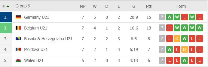 În urma acestei întâlnirii, Moldova U21 a urcat pe locul 4 în Grupa 9, având 7 puncte. Țara Galilor U21 a rămas codașa grupei, cu 6 puncte. Ultimul meci al Moldovei este în Țara Galilor, pe 13 noiembrie.
