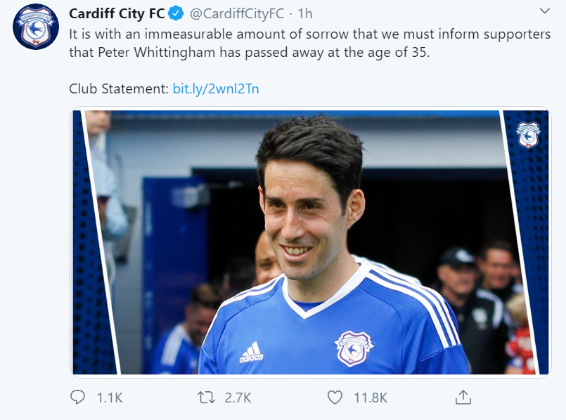 „Cu mari regrete trebuie să vă anunțăm că Peter Whittingham a murit la doar 35 de ani. Suntem distruși de durere. Vestea dispariției lui Peter ne-a zguduit. Toate gândurile noastre merg către soția lui, Amanda, și către fiul său și familia lui”, este anunțul de pe site-ul fostei echipe din Premier League.
