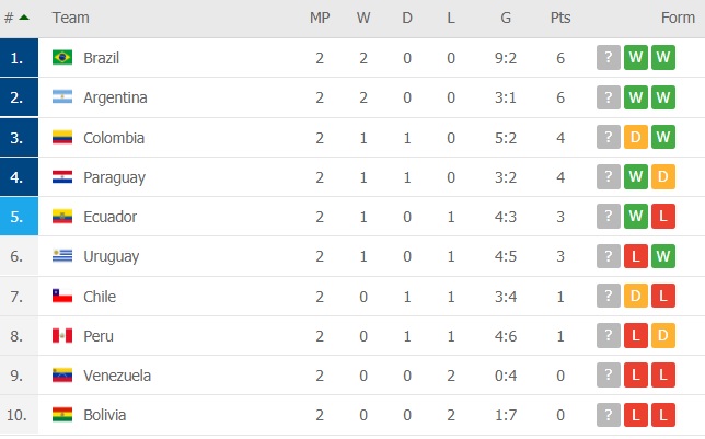Următorii lor adversari din noiembrie sunt Ecuador și Paraguay, în timp ce Argentina se va confrunta cu Paraguay acasă înainte de a călători în Peru. Primele patru echipe din grupa sud-americană de 10 echipe se califică direct pentru Qatar 2022, iar cea de-a cincea clasată intră într-un playoff interegional.