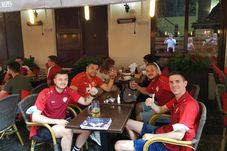 O parte dintre fanii Macedoniei de Nord au stat alături de austrieci la terase și au cântat minute în șir, așa cum se poate observa și din materialul video de mai jos: