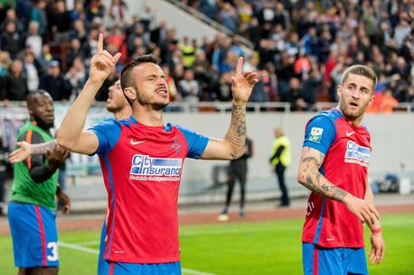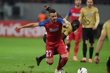 Steaua's players (L -R) front raw: Romanian midfielder William Amorim, Romanian midfielder Alexandru Bourceanu, Romanian forward Adrian Popa, Romanian defender Alin Tosca and Ghanaian midfielder Muniru Sulley, Second row: Romanian defender Gabriel Tamas, Serbian forward Bojan Golubovic, French defender Wilfried Moke, Serbian defender Marko Momcilovic, Italian midfielder Fernando Boldrin and Romanian goalkeeper Florin Nita pose prior to the UEFA Europa League group L football match beetween FC Zurich and Steaua Bucuresti on November 3, 2016 at Stadion Letzigrund in Zurich.,Image: 304759290, License: Rights-managed, Restrictions: , Model Release: no